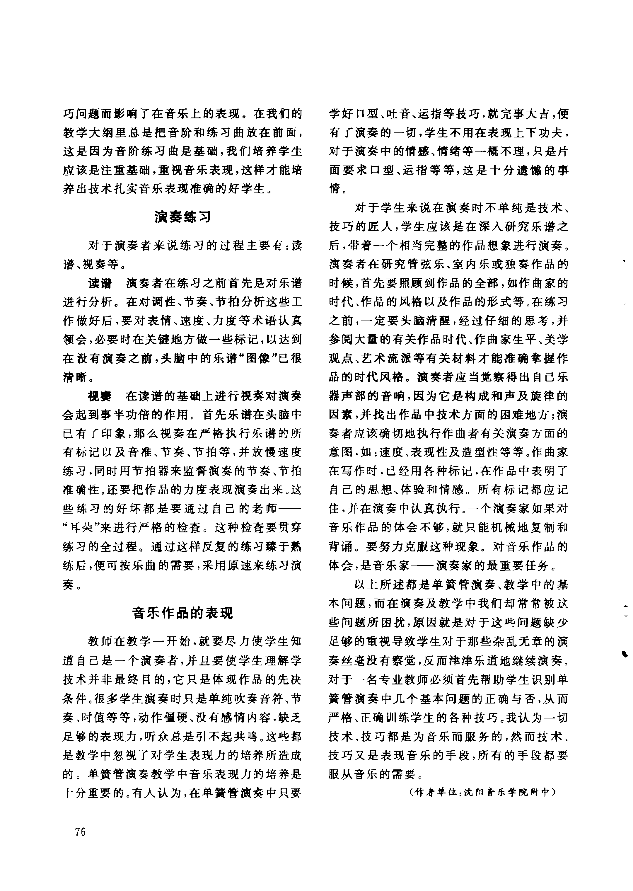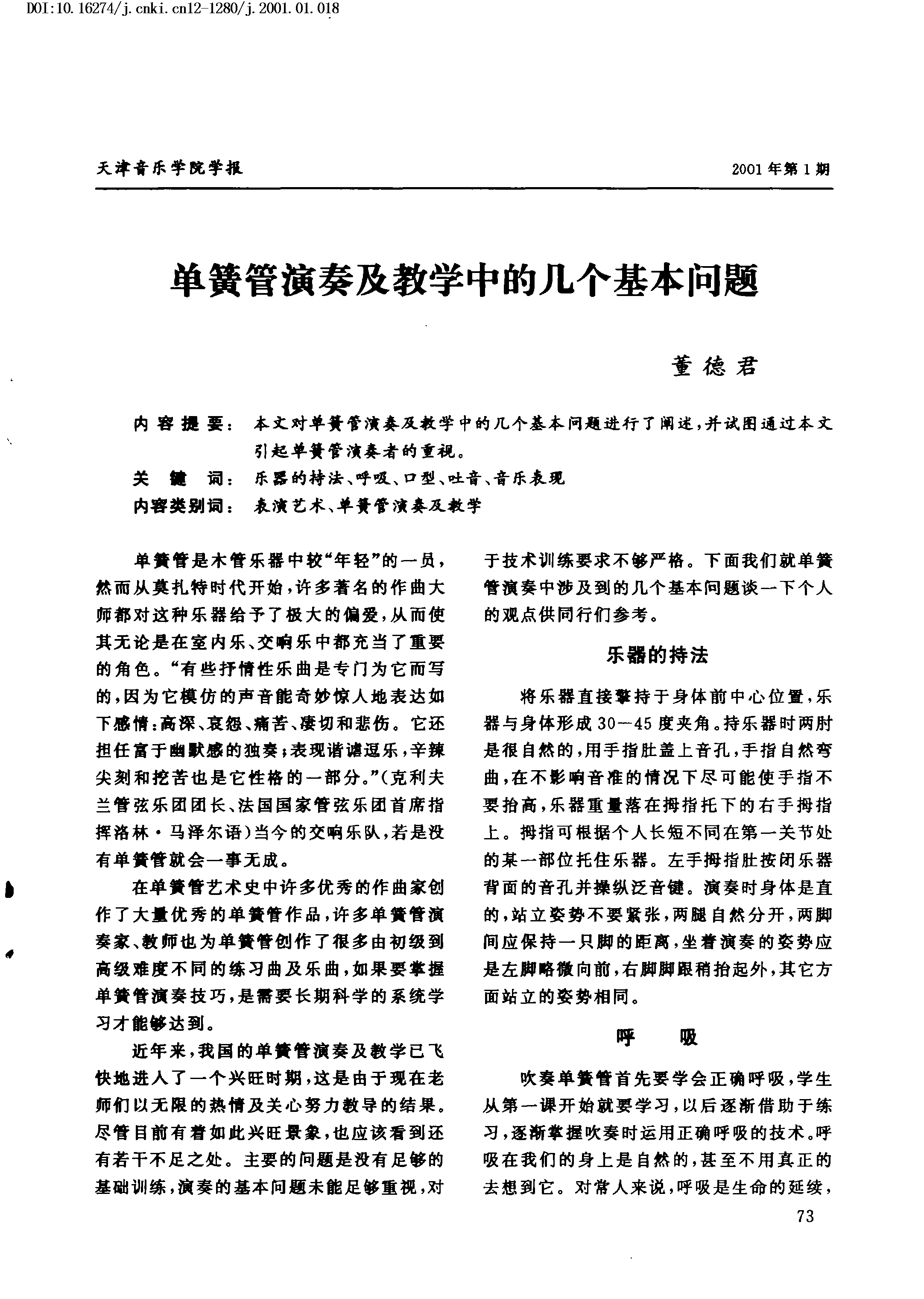 董德君《单簧管演奏及教学中的几个基本问题》-《天津音乐学院学报》2001年第1期