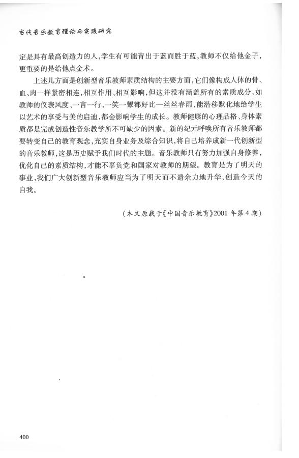 崔学荣《创新型音乐教师素质的建构》—《中国音乐教育》2001年第4期