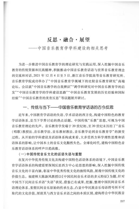 崔学荣、朱灵《反思·融合·展望—中国音乐教育学学科建设的相关思考》—《人民音乐》2022年第3期