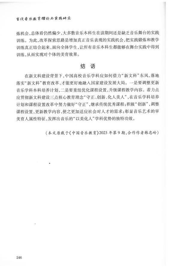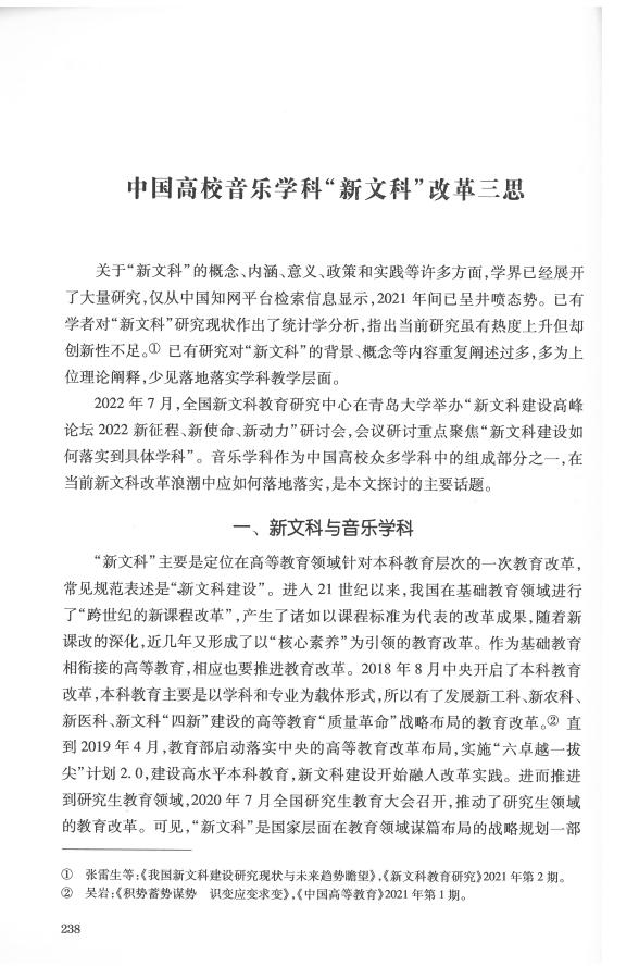 崔学荣、韩忠岭《中国高校音乐学科“新文科”改革三思》—《中国音乐教育》2023年第9期