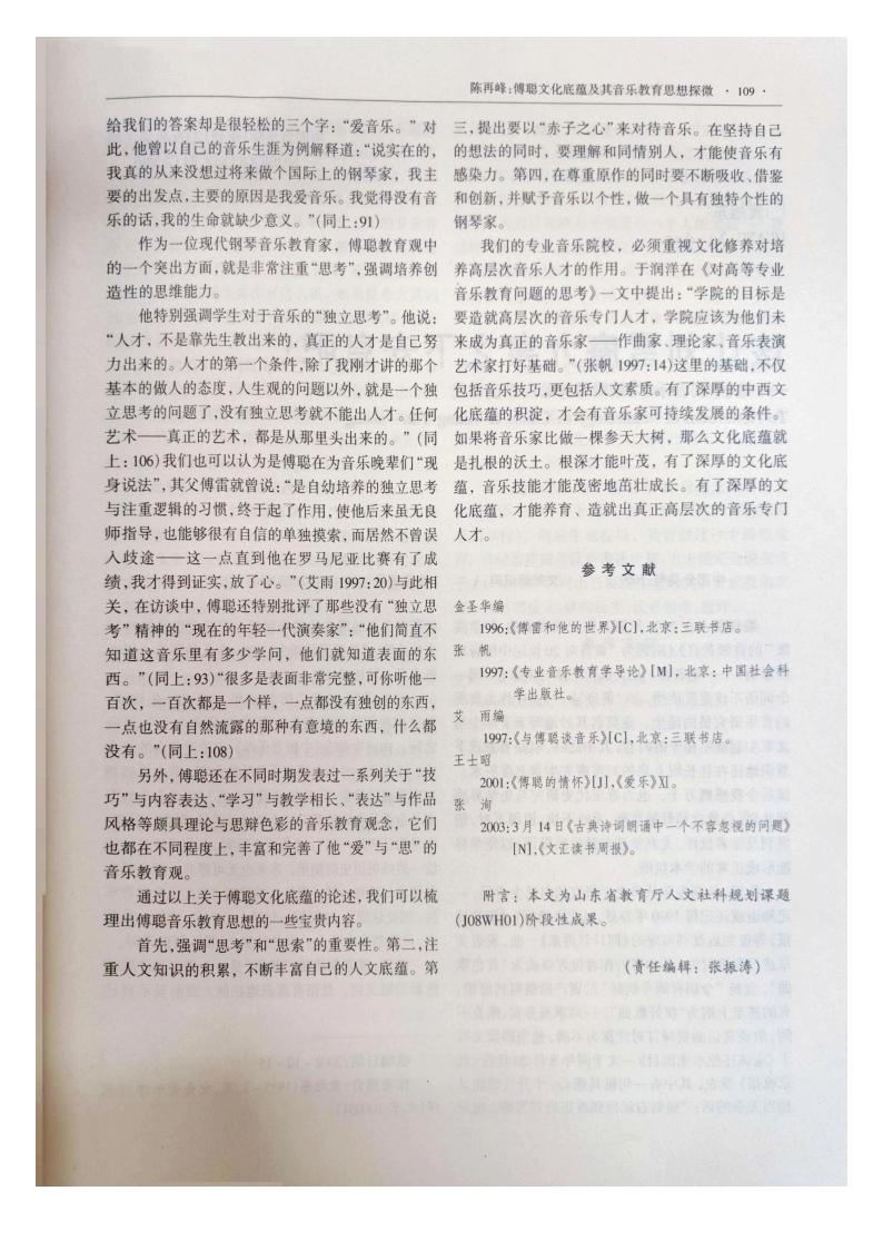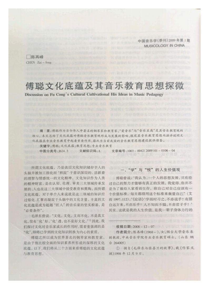 陈再峰《傅聪文化底蕴及其音乐教育思想探微》—《中国音乐学(季刊)》2009年第1期
