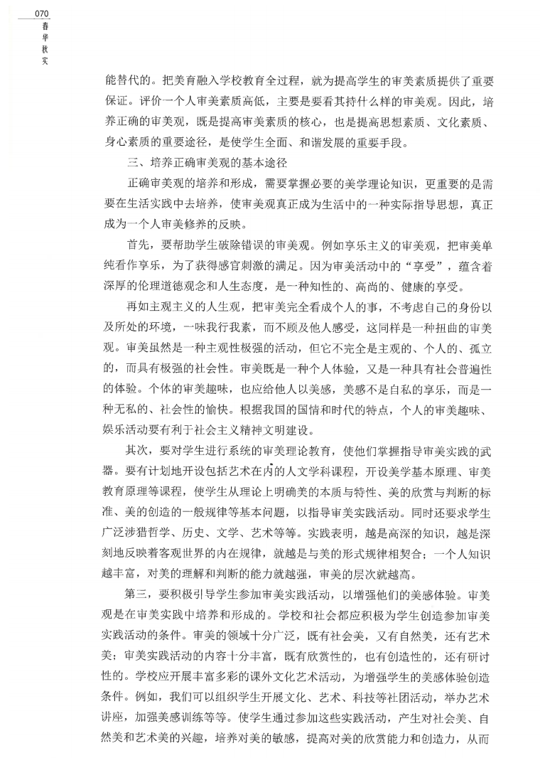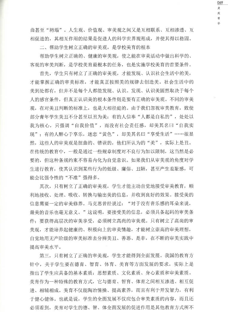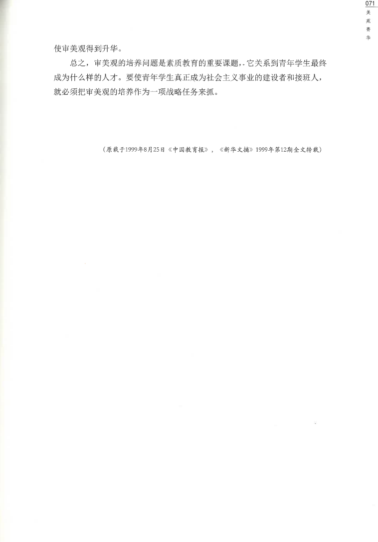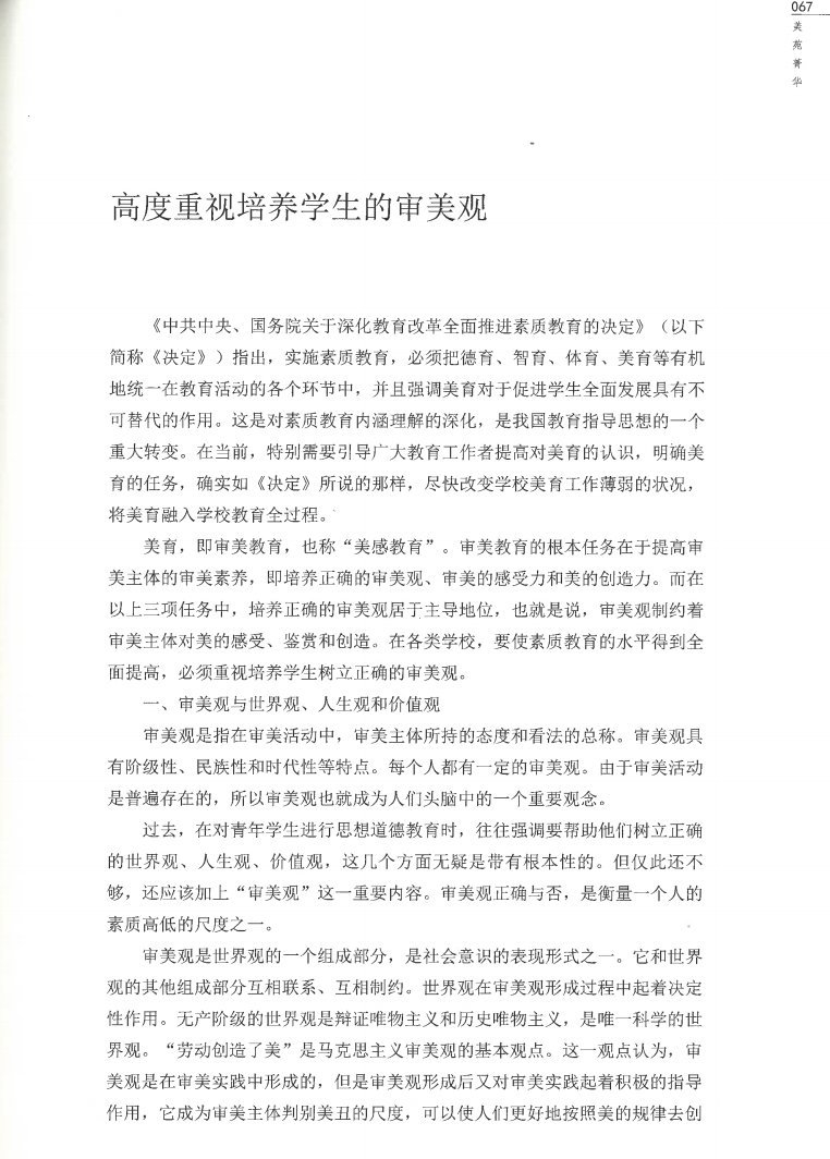 于文书《高度重视培养学生的审美观》-原载于《中国教育报》《新华文稿》